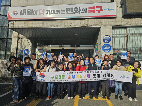 ÀåÃáÈ ±¸Æ÷3µ¿ÀåÀº ¡°ÅëÀå´ÔµéÀÇ Àû±ØÀûÀÎ Âü¿©¿Í ´ë¸é È«º¸ ´öºÐ¿¡ Áֹε鿡°Ô ½Â¿ëÂ÷ ¿äÀÏÁ¦ÀÇ Çʿ伺ÀÌ ´õ¿í È¿°úÀûÀ¸·Î Àü´ÞµÆ´Ù¡±¸ç ¡°¾ÕÀ¸·Îµµ ¿¡³ÊÁö Àý¾à°ú ģȯ°æ ±³Å빮Ȱ¡ ÀÏ»ó¿¡ Á¤ÂøµÉ ¼ö ÀÖµµ·Ï ±¸Æ÷3µ¿ÀÌ ¾ÕÀå¼¼ ³ë·ÂÇϰڴ١±°í ÀüÇß´Ù.