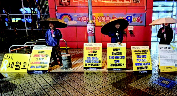 È­¸íÃÐºÒ È¸¿øµéÀÌ 12³â° Áýȸ¸¦ À̾´Â °Ç ¼¼¿ùÈ£ Âü»çÀÇ ¿ÏÀüÇÑ Áø»ó±Ô¸íÀÌ ÀÌ·ïÁöÁö ¾Ê¾Ò´Ù°í »ý°¢Çϱ⠶§¹®ÀÌ´Ù. ±èÁ¾¹Î ºÎ»êÈ­¸íÃÐºÒ ´ëÇ¥´Â ¡°¸ðµç ±¹¹ÎÀÌ 2, 3ÀÏ µ¿¾È »ýÁß°è·Î ¼¼¿ùÈ£°¡ ħ¸ôÇÏ´Â ¸ð½ÀÀ» ÁöÄѺôÙ. ¿ì¸®´Â Ä¡À¯µÇÁö ¾Ê¾Ò´Ù. ¼¼¿ùÈ£ Âü»ç°¡ ÀϾ ¿øÀεµ ºÐ¸íÈ÷ ¹àÇôÁöÁö ¾Ê¾Ò´Ù¡±¸ç ¡°¼¼¿ùÈ£ Âü»ç Áø»ó±Ô¸íÀº ¾ÈÀü »çȸ·Î ³ª¾Æ°¡´Â ù °ÉÀ½ÀÌ´Ù. ¿ÂÀüÇÑ Áø»ó±Ô¸í ¾øÀÌ´Â ÀÌÅ¿ø Âü»ç, ¹«¾È°øÇ× Âü»ç µî »çȸÀû ºñ±ØÀº ¹Ýº¹µÉ ¼ö¹Û¿¡ ¾ø´Ù¡±°í ¸»Çß´Ù.