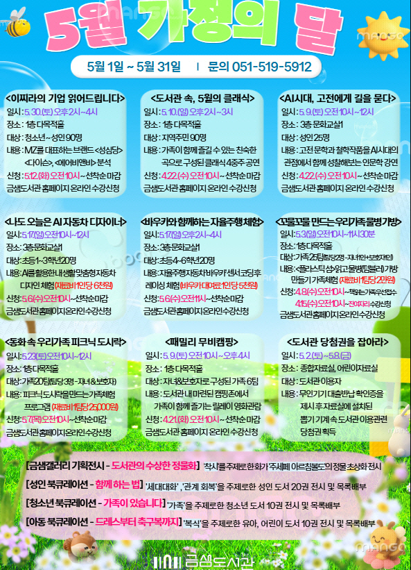ºÎ»ê ±ÝÁ¤±¸ ±Ý»ùµµ¼°üÀº 5¿ù °¡Á¤ÀÇ ´ÞÀ» ¸Â¾Æ ¿À´Â 5¿ù 1ÀϺÎÅÍ 31ÀϱîÁö ÀÛ°¡(À¯Æ©¹ö) °¿¬, Ŭ·¡½Ä °ø¿¬, üÇèÇà»ç µî ¿Â °¡Á·ÀÌ ÇÔ²² Áñ±æ ¼ö ÀÖ´Â ¡¸°¡Á¤ÀÇ ´Þ¡¹ Ưº° ÇÁ·Î±×·¥À» ¿î¿µÇÑ´Ù°í ¹àÇû´Ù.