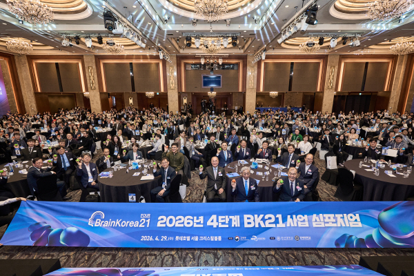 ±³À°ºÎ¿Í Çѱ¹¿¬±¸Àç´ÜÀÌ ÁÖÃÖÇϰí, ºÎ»ê´ëÇб³(ÃÑÀå ÃÖÀç¿ø)¿Í ¿¬¼¼´ëÇб³(ÃÑÀå À±µ¿¼·)°¡ °øµ¿ ÁÖ°üÇÑ 2026³â ¡¸4´Ü°è BK21»ç¾÷ ½ÉÆ÷Áö¾ö¡¹ÀÌ 29ÀÏ ¿ÀÀü ¼¿ï ·Ôµ¥È£ÅÚ Å©¸®½ºÅ»º¼·ë¿¡¼ ¼ºÈ²¸®¿¡ °³ÃֵƴÙ.