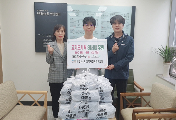 ºÎ»ê ¼±¸ ¼´ë½Å4µ¿ Áö¿ª»çȸº¸ÀåÇùÀÇü(À§¿øÀå È«±¹¿)´Â Áö³ 28ÀÏ ÇªÁÞ°£ °í±âµµ½Ã¶ô ´ë½ÅÁ¡¡¤¼±¸½£(´ëÇ¥ Çö½Â¿ì)ÀÇ ÈÄ¿øÀ¸·Î Ãë¾à°èÃþ 30¼¼´ë(60¸¸ ¿ø »ó´ç)¿¡°Ô ¿µ¾ç¡¤»ç¶û °¡µæ °í±âµµ½Ã¶ôÀ» Àü´ÞÇÏ°í ¾ÈºÎ È®ÀÎÀ» ÇÏ¸ç µû¶æÇÑ ³ª´®À» ÀüÇß´Ù.