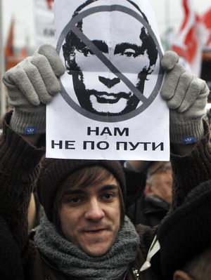 | 10ÀÏ(ÇöÁö½Ã°£) ·¯½Ã¾Æ ¸ð½ºÅ©¹Ù¿¡¼ ¹ú¾îÁø ÃѼ± ºÎÁ¤ ±Ôź ½ÃÀ§¿¡¼ ÇÑ Âü°¡ÀÚ°¡ ºí¶óµð¹Ì¸£ Ǫƾ ÃѸ®ÀÇ ¾ó±¼ ¹Ø¿¡ "¿ì¸®´Â ´Ù¸¥ ±æÀ» °¡°í ÀÖ´Ù"¶ó°í ¾´ Æ÷½ºÅ͸¦ µé¾î º¸À̰í ÀÖ´Ù. AP ¿¬ÇÕ´º½º |