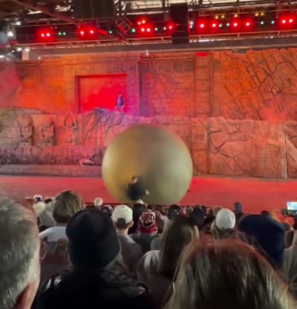 ¹Ì±¹ Ç÷θ®´ÙÁÖ µðÁî´Ï ¿ùµå¿¡¼­ °ø¿¬ µµÁß °´¼®À» ÇâÇØ ±¼·¯¿À´ø 180kg °í¹«°øÀ» Á÷¿øÀÌ ¿Â¸öÀ¸·Î ¸·¾Ò´Ù.