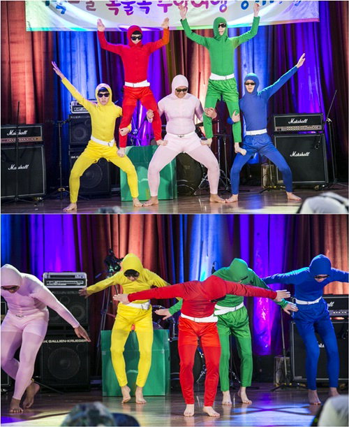 °ø°³µÈ »çÁø ¼Ó¿¡´Â ÂÌÂÌÀ̸¦ ÀÔ°í Àΰ£Å¾À» ½×¾Æ Æ÷Á ÃëÇϰí ÀÖ´Â 'Áö±¸¹æÀ§´ë'ÀÇ ¸ð½ÀÀÌ ´ã°ÜÀÖ´Ù. 'Áö±¸¹æÀ§´ë' 5ÀÎÁ¶´Â ¼±±Û¶ó½º¸¦ Âø¿ëÇϰí, »¡°, ÆÄ¶û, ÃÊ·Ï, ³ë¶û, ºÐÈ«À̶ó´Â ´Ù¼¸ ºû±òÀÇ ÂÌÂÌÀ̸¦ Â÷·Á ÀÔÀº ä »ç¹µ ÁøÁöÇÏ°Ô Æ÷Á ÃëÇϰí ÀÖ¾î ¿ôÀ½À» ÀھƳ½´Ù.