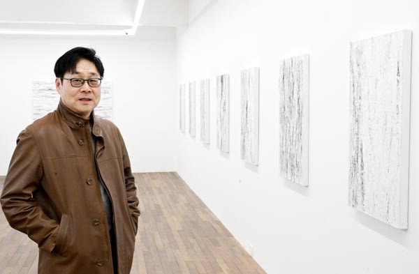 ±×´Â ¡°ÀÌÀü¿¡ ½è´ø Àç·áº¸´Ù Á¾ÀÌÀÇ µÎ²²°¨ÀÌ ÀÖ¾î Ä¿ÆÃ ¹æ½Äµµ ´Þ¶óÁ³°í, ±×·¡¼­ Á¤±³ÇÑ È¸È­º¸´Ù ¼±ÀÌ ±½Àº Ãß»óÀÇ ´À³¦ÀÌ ´õ °­ÇØÁø °Í °°´Ù¡±¸é¼­ ¡°Èò»ö°ú °ËÀº»öÀÌ ´Ü¼øÇØ º¸ÀÌÁö¸¸ ÀÛ¾÷ °úÁ¤¿¡¼­ ¼û°ÜÁø »öÀÌ ³ª¿À±âµµ, ÀǵµÇÏÁö ¾ÊÀº »öÀÌ ¸¸µé¾îÁö±âµµ ÇØ ¸Å¿ì Èï¹Ì·Î¿ü´Ù¡±°í ¸»Çß´Ù.
