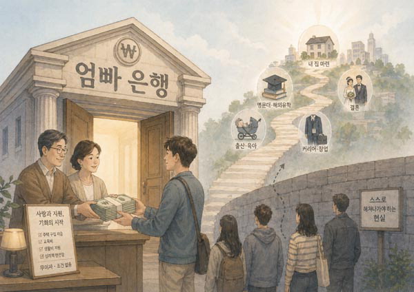 ÀÌ Ã¥¿¡¼ ¡®¾öºü ÀºÇ࡯Àº ºÎ¸ð°¡ Àڳ࿡°Ô Á¦°øÇÏ´Â ÁÖÅà ±¸ÀÔ ÀÚ±Ý, ±³À°ºñ, »ýȰºñ, À°¾Æ ¹× µ¹º½ Áö¿ø µî °¡½ÃÀû Áö¿ø»Ó¸¸ ¾Æ´Ï¶ó, ½ÇÆÐÇÏ´õ¶óµµ ¾ðÁ¦³ª µÇµ¹¾Æ°¥ °÷ÀÌ µÇ¾îÁÖ´Â ½É¸®Àû ¾ÈÀü¸Á µî ºñ°¡½ÃÀû Áö¿ø±îÁö¸¦ Æ÷°ýÇÑ´Ù. ±³À°»Ó¸¸ ¾Æ´Ï¶ó ÁÖ°Å, °áÈ¥, Ãâ»ê ¹× À°¾Æ, Ä¿¸®¾î Çü¼º °°Àº ¼ºÀαâÀÇ ÁÖ¿ä Àλý ÀÌÁ¤Ç¥Á¶Â÷ ºÎ¸ðÀÇ °æÁ¦·Â¿¡ ÀÇÇØ Á¿ìµÇ´Â Çö»óÀÌ ½Éȵǰí ÀÖ´Ù.