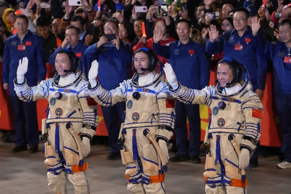 | Áß±¹ÀÇ À¯ÀÎ ¿ìÁÖ¼±ÀÎ ¡®¼±Àú¿ì 21È£¡¯¿¡ ž½ÂÇÏ´Â ºñÇà»ç 3¸íÀÌ ÁÖÃë¾È À§¼º¹ß»ç¼¾ÅÍ¿¡¼ ¼ÕÀ» µé¾î ÀλçÇϰí ÀÖ´Ù. ¿¬ÇÕ´º½º