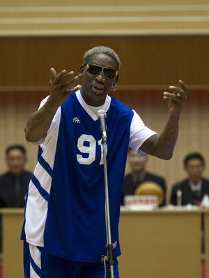 Æò¾çÀ» ¹æ¹® ÁßÀÎ ¹Ì±¹ ÇÁ·Î³ó±¸(NBA) Ãâ½Å ¼±¼ö µ¥´Ï½º ·Îµå¸ÕÀÌ 8ÀÏ ±èÁ¤Àº ±¹¹æÀ§¿øÈ¸ Á¦1À§¿øÀå ¾Õ¿¡¼ »ýÀÏ ÃàÇÏ ³ë·¡¸¦ ºÎ¸£°í ÀÖ´Ù. ·Îµå¸ÕÀº À̳¯ Æò¾ç ½Ç³»Ã¼À°°ü¿¡¼ ¿¸° NBA Ãâ½Å ½ºÅ¸µé°ú ºÏÇÑ ¼±¼öµéÀÇ Ä£¼±°æ±â¿¡ ¾Õ¼ ±è À§¿øÀå¿¡°Ô ¹ÙÄ£´Ù¸ç 'ÇØÇÇ ¹ö½ºµ¥ÀÌ'¸¦ ºÒ·¶´Ù. AP¿¬ÇÕ´º½º