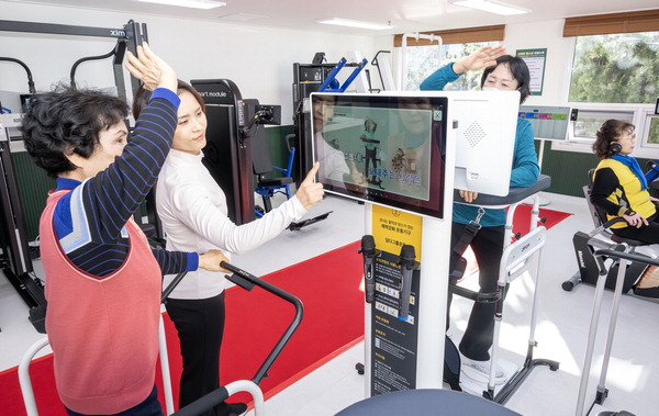 9ÀÏ ºÎ»ê ÇØ¿î´ë±¸ ¾îÁø»ù³ëÀÎÁ¾ÇÕº¹Áö°ü¿¡ °³¼ÒÇÑ ¡®µðÁöÅÐ º¹Áö°ü¡¯¿¡¼­ ¾î¸£½ÅµéÀÌ ¿îµ¿À» Çϰí ÀÖ´Ù. ¡®µðÁöÅÐ º¹Áö°ü¡¯Àº ½º¸¶Æ® ±â±â¸¦ Ȱ¿ëÇÑ ½Åü ÀçȰ, °¡»óÇö½Ç(VR) ±â±â¸¦ ÀÌ¿ëÇÑ ÀÎÁöÀçȰ, ÀΰøÁö´É(AI)À» Ȱ¿ëÇÑ °Ç°­ÃøÁ¤ µî °í·ÉÃþ ÇコÄÉ¾î ¼­ºñ½º¸¦ Áö¿øÇÑ´Ù.