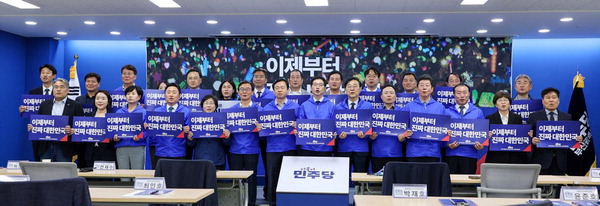 6.3 ´ëÅë·É ¼±°Å¸¦ ¾ÕµÎ°í ´õºÒ¾î¹ÎÁÖ´ç ºÎ»ê¼±°Å´ëÃ¥À§¿øÈ¸°¡ Ãâ¹ü½ÄÀ» ÇÏ¸é¼ "ÀÌÁ¦ºÎÅÍ ÁøÂ¥ ´ëÇѹα¹"À̶ó´Â ±¸È£¸¦ ¿ÜÄ¡´Â ¸ð½À. ¹ÎÁÖ´ç ºÎ»ê½Ã´ç Á¦°ø |