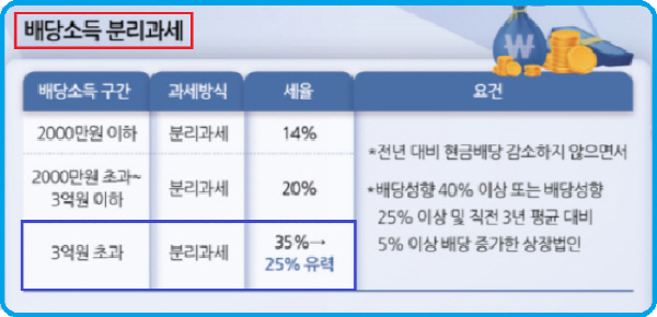 À̽´(Issue)°¡ µÇ°í ÀÖ´Â ¡®¹è´ç¼Òµæ ºÐ¸®°ú¼¼¡¯¶õ ¿¬°£ 2000¸¸ ¿øÀ» ÃʰúÇÏ´Â °í¾×ÀÇ ¹è´ç¼Òµæ¿¡ ´ëÇØ¼­µµ Á¾ÇÕ°ú¼¼ ´ë½Å ÀÏÁ¤ ¼¼À²À» Àû¿ëÇÏ¿© ºÐ¸®ÇØ °ú¼¼ÇÏÀÚ´Â ÃëÁöÀÇ ÀýÃæ¾ÈÀÌ´Ù. °í¾×ÀÇ ¹è´ç¼Òµæ¿¡ ´ëÇØ Á¾Çռҵ漼ÀÇ ³ôÀº ´©Áø¼¼À²(Áö¹æ¼¼ Æ÷ÇÔ ÃÖ°í 49.5%)¸¦ Àû¿ëÇÏ´Â ´ë½Å º°µµÀÇ ³·Àº ¼¼À²·Î °ú¼¼Çؼ­ ÁֽĽÃÀåÀ» ÅëÇÑ ¹è´ç¼öÀÍ¿¡ ºÎ°úÇÏ´Â °íÀ²ÀÇ ¼¼±Ý¡±¸¿¡ ´ëÇÑ ºÎ´ãÀ» ÁÙ¿© Áõ½Ã·Î ÀÚ±ÝÀ¯ÀÔÀ» ÃËÁøÇϱâ À§ÇÑ Á¶Ä¡ÀÎ °ÍÀÌ´Ù. °í¹è´ç ±â¾÷ ÅõÀÚ¸¦ ÅëÇÑ ¹è´ç¼Òµæ µî ƯÁ¤Á¶°ÇÀÇ ¹è´ç¼Òµæ¿¡ ´ëÇØ ÃÖ°í¼¼À²À» 25% ¼öÁØÀ¸·Î ºÐ¸®°ú¼¼¸¦ Àû¿ëÇÏ´Â ¹æ¾ÈÀÌ ³íÀÇ ÁßÀ̶ó ½ÃÀå¿¡¼­´Â ±àÁ¤ÀûÀ¸·Î ÇØ¼®Çϰí ÀÖ´Ù.