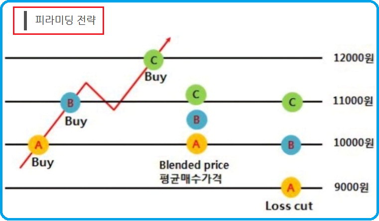 ÇǶó¹Ìµù Àü·«ÀÇ Æò±Õ´Ü°¡ °ü¸®´Â ÃÖÃÊ ÁøÀÔ ½Ã °¡Àå Å« ±Ô¸ðÀÇ ÀÚ±ÝÀ» ÅõÀÚÇϰí. µÎ ¹øÂ° ¸Å¼ö´Â ÁÖ°¡°¡ ´õ »ó½ÂÇÒ ¶§ ù ¹øÂ° ¸Å¼öº¸´Ù ÀûÀº ±Ô¸ð·Î Ãß°¡¸Å¼ö ÇÑ´Ù. ´ÙÀ½À¸·Î ¼¼ ¹øÂ° ¸Å¼ö´Â ÁÖ°¡°¡ Ãß°¡ÀûÀ¸·Î ´õ »ó½ÂÇϸé Á» ´õ ÀûÀº ±Ô¸ð·Î ¸¶Áö¸· Ãß°¡¸Å¼ö¸¦ ÇÑ´Ù. ±âº»ÀûÀ¸·Î Ãß¼¼¸Å¸ÅÀÚ°¡ »ç¿ëÇÏ´Â ±â¹ýÀ¸·Î Ãß¼¼ÀÇ Áö¼Ó¼ºÀÌ Áß¿äÇÏ´Ù´Â ÀüÁ¦ ÇÏ¿¡ ÁøÇàÇÏ´Â ¹æ½ÄÀÌ´Ù.
