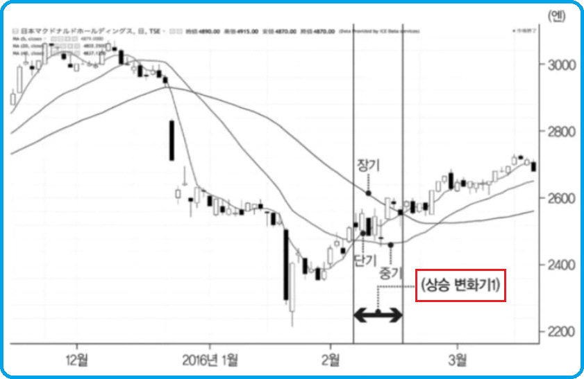 ¸®¹ö¸ð¾î´Â ÁÖ°¡°¡ ÀÏÁ¤ °¡°Ý´ë¸¦ µ¹ÆÄÇÏ¿© ÃÖ¼ÒÀúÇ×°æ·Î°¡ ¹Ù²î¾úÀ½À» È®ÀνÃÄÑÁÖ´Â ÀüȯÁ¡À» ¶ÇÇÑ Á߽à Çß´Ù. »ó½ÂÀüȯÁ¡Àº ÁÖ°¡°¡ ÀÌÀüÀÇ ÀúÇ×¼±À» ÃæºÐÇÑ °Å·¡·®À» ¼ö¹ÝÇÏ¸ç µ¹ÆÄÇÏ°í ±× ¼öÁØÀ» À¯ÁöÇÒ ¶§´Ù. ÀÌ´Â ÃÖ¼ÒÀúÇ×°æ·Î°¡ »ó¹æÀ¸·Î È®Á¤µÇ¾úÀ½À» ÀǹÌÇÑ´Ù. Ç϶ôÀüȯÁ¡Àº ÁÖ°¡°¡ ÀÌÀüÀÇ ÁöÁö¼±À» ÀÌÅ»Çϰí Ç϶ôÇÒ ¶§´Ù. ÀÌ´Â °æ·Î°¡ ÇϹæÀ¸·Î ¹Ù²î¾úÀ½ ÀǹÌÇÑ´Ù. ¸®¹ö¸ð¾î´Â ÀÌ·¯ÇÑ ÀüȯÁ¡ÀÌ ³ªÅ¸³¯ ¶§±îÁö Àγ»½ÉÀ» °¡Áö°í ±â´Ù¸®´Â °ÍÀÌ ÅõÀÚ¿¡¼­ °¡Àå Áß¿äÇÑ ´ö¸ñÀ̶ó°í °­Á¶Çß´Ù. Á¶±Ý ´Ê´õ¶óµµ ½ÃÀåÀÌ ÀÚ½ÅÀÇ ÆÇ´ÜÀ» È®ÀνÃÄÑÁÙ ¶§ ÁøÀÔÇØ¾ß ¼Õ½ÇÀ» ÇÇÇÒ ¼ö ÀÖ´Ù°í Çß´Ù.