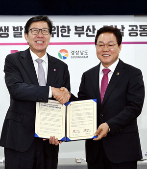 | ¹ÚÇüÁØ ºÎ»ê½ÃÀå(¿ÞÂÊ)°ú ¹Ú¿Ï¼ö °æ³²µµÁö»ç°¡ 2024³â 6¿ù 17ÀÏ ºÎ»ê½Ãû¿¡¼ ÇàÁ¤ÅëÇÕÀ» ºñ·ÔÇÑ Çö¾ÈÀ» ³íÀÇÇÏ°í ¹Ì·¡ µµ¾à°ú »ó»ý ¹ßÀüÀ» µµ¸ðÇÏ·Á´Â ºÎ»ê °æ³² °øµ¿ÇÕÀǹ®À» µé°í ¾Ç¼öÇϰí ÀÖ´Ù. À̳¯ ÇÕÀÇ¿¡ µû¶ó °°ÀºÇØ 11¿ù ¹ßÁ·ÇÑ ºÎ»ê¡¤°æ³² ÇàÁ¤ÅëÇÕ °ø·ÐÈÀ§¿øÈ¸°¡ 13ÀÏ °æ³²µµÃ»¿¡¼ ÃÖÁ¾ º¸°íȸ¸¦ ¿¬´Ù. ±¹Á¦½Å¹®DB |