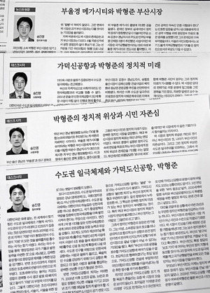 ÇÏÁö¸¸ ´õ ±â°¡ Âû ´ë¸ñÀº ÇàÁ¤ÅëÇÕ Á¤±¹¿¡¼ ¹ÚÇüÁØÀÇ ¡®½ÇÁ¾¡¯ÀÌ´Ù. ¡°¶±½Ã·ç(Á¦µµ °³¼±)°¡ ¾Æ´Ï¶ó ¶±(Àμ¾Æ¼ºê)À» ÁÖ´Â ¹æ½ÄÀÇ ÇàÁ¤ÅëÇÕÀº Áö¼Ó°¡´ÉÇÏÁöµµ ¾Ê°í Áö¹æºÐ±Ç ÃëÁö¿¡µµ ¸ÂÁö ¾Ê´Ù¡±´Â ±×ÀÇ ÀÔÀåÀº ½Å³â º®µÎ ¸ô¾ÆÄ¡´Â ÇàÁ¤ÅëÇÕ Á¤±¹¿¡¼´Â µé¸®Áöµµ ¾Ê´Â ±Ó¼Ó¸» ¼öÁØÀÌ´Ù. ÁÖº¯¿¡´Â ÇàÁ¤ÅëÇÕÀÌ ¿©±ÇÀÇ ¼±°ÅÀü·«À̶ó´Â ¾Ë·®ÇÑ ±³¾ð¸¸ ³¹«ÇÏ´Ï ÅëźÇÒ Áö°æÀÌ´Ù. ±¤¿ª Áö¹æÁ¤ºÎ °£ ÅëÇÕÀº ÇÇÇÒ ¼ö ¾ø°í, ÇÇÇØ¼µµ ¾È µÇ´Â ¼÷¸íÀÌ´Ù. À̸í¹Ú Á¤ºÎÀÇ ¡®5+2 ±¤¿ª°æÁ¦±Ç ¸ðµ¨¡¯À» ÀÔ¾ÈÇß°í, 30³â Àü ½Ã¹Î¿îµ¿°¡·Î¼ ºÎ¿ï°æ ÅëÇÕÀ» °¡Àå ¸ÕÀú ¿ÜÃÆ´ø ¹ÚÇüÁØÀÌ ¸ð¸¦ ¸® ¾ø´Ù. Àü±¹ ±¤¿ª´ÜüÀå Áß ÇàÁ¤ÅëÇÕ ³íÀǸ¦ ÁÖµµÇÒ ´É·ÂÀ» °®Ãá Àλ簡 ¹ÚÇüÁØ ¸»°í ´õ ÀÖ³ª. ¹«¾ùÀ» °í¹ÎÇϳª.