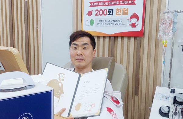 ´ëÇÑÀû½ÊÀÚ»ç ºÎ»êÇ÷¾×¿øÀº Áö³ 10ÀÏ ÇåÇ÷ÀÇÁý ´ë¿¬¼¾ÅÍ¿¡¼ ±èÇüÂù ¾¾°¡ ÇåÇ÷ 200ȸ¸¦ ´Þ¼ºÇØ ¡®¸í¿¹´ëÀ塯(»çÁø)¿¡ ¿Ã¶ú´Ù°í ¹àÇû´Ù.