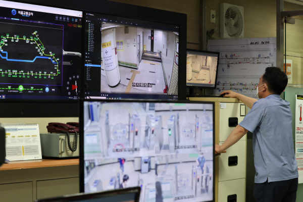 | ½Å´ç¿ª ¿ª¹«¿øÀÌ ÇØ´ç »ìÀλç°ÇÀÌ ¹ß»ýÇÑ ¿©ÀÚÈÀå½Ç ÀÔ±¸ µî ¿ª»ç ³»¿¡ ¼³Ä¡µÈ CCTV ȸéÀ» ¸ð´ÏÅ͸µÇÏ´Â ¸ð½À. ¿¬ÇÕ´º½º