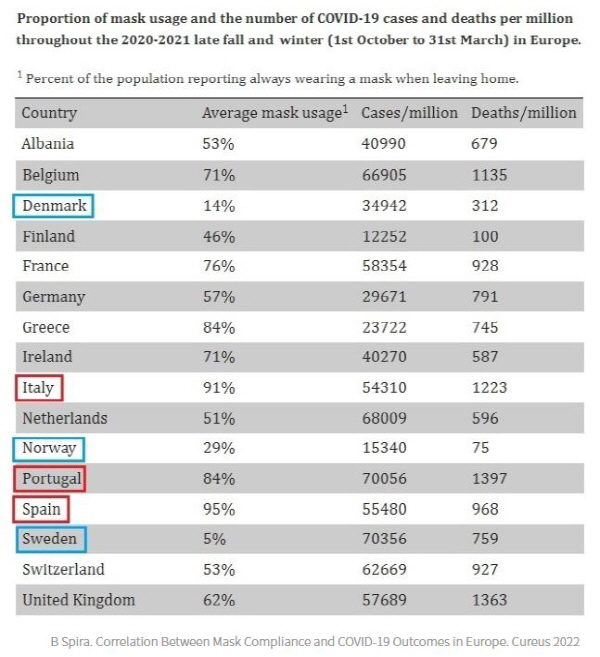 ¼Û ¼¾ÅÍÀåÀº ÁÖÀåÀÇ ±Ù°Å·Î ÆÒµ¥¹Í ¶§ ¸¶½ºÅ© Âø¿ëÀÌ Àß µÈ ³ª¶ó¿Í ±×·¸Áö ¾Ê¾Ò´ø ³ª¶ó °£ È£Èí±â ¹ÙÀÌ·¯½º °¨¿°À²À» ºñ±³ÇØ Á¦½ÃÇß´Ù. ±×´Â À¯·´ ÀÇÇÐ ÇмúÁö ¡®Å¥·¹¿ì½º¡¯¿¡ ½Ç¸° Á¶»ç ÀڷḦ Åä´ë·Î ¡°À¯·´¿¡¼ Äڷγª19°¡ ±Ø¼ºÀ̾ú´ø 2020, 2021³â °Ü¿ï (±¹¹ÎÀÇ) ¸¶½ºÅ© Âø¿ë·üÀÌ 96%·Î °¡Àå ³ô¾Ò´ø ½ºÆäÀΰú 5%·Î °¡Àå ³·¾Ò´ø ½º¿þµ§ÀÇ Àα¸ 100¸¸ ¸í´ç Äڷγª19 »ç¸ÁÀÚ ¼ýÀÚ¸¦ ºñ±³ÇØ º¸¸é ¡®³ë¸¶½ºÅ©¡¯ Á¤Ã¥À» °í¼öÇß´ø ½º¿þµ§(759¸í)ÀÌ ½ºÆäÀÎ(968¸í)º¸´Ù »ç¸ÁÀÚ°¡ Àû¾ú´Ù¡±°í ÀüÇß´Ù. ¼Û ¼¾ÅÍÀåÀº ¶Ç ¸¶½ºÅ© Âø¿ë·üÀÌ 30% ¹Ì¸¸À̾ú´ø µ§¸¶Å© ³ë¸£¿þÀ̵µ Âø¿ë·ü 80% ÀÌ»óÀÎ ÀÌÅ»¸®¾Æ Æ÷¸£Åõ°¥¿¡ ºñÇØ Äڷγª19 °¨¿° »ç¸ÁÀÚ ¼ýÀÚ°¡ ³·°Ô ³ª¿Â Á¡À» ¤¾ú´Ù. ±×´Â ¡°2021³â 11¿ù Çѱ¹ÀÇ ¸¶½ºÅ© Âø¿ë·üÀº ¾à 94%·Î Àü ¼¼°è¿¡¼ °¡Àå ³ô¾Ò´Ù. ±×·±µ¥µµ Àα¸ ´ëºñ È®ÁøÀÚ°¡ °¡Àå ¸¹Àº ³ª¶ó°¡ µÆ´Ù¡±¸é¼ ¡°¸¶½ºÅ©ÀÇ È¿°ú°¡ ÀÖ¾ú´Ù¸é Àý´ë ³ª¿Ã ¼ö ¾ø´Â µ¥ÀÌÅÍ¿´´Ù¡±°í °Á¶Çß´Ù.