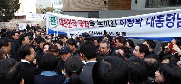 ÅðÀÓÇÏ´Â À̸í¹Ú ´ëÅë·ÉÀÌ 24ÀÏ ¿ÀÈÄ ÁֹεéÀÇ ¶ß°Å¿î ȯ¿µÀ» ¹ÞÀ¸¸ç ¼¿ï °³²±¸ ³íÇöµ¿ »çÀú·Î µ¹¾Æ¿Ô´Ù.