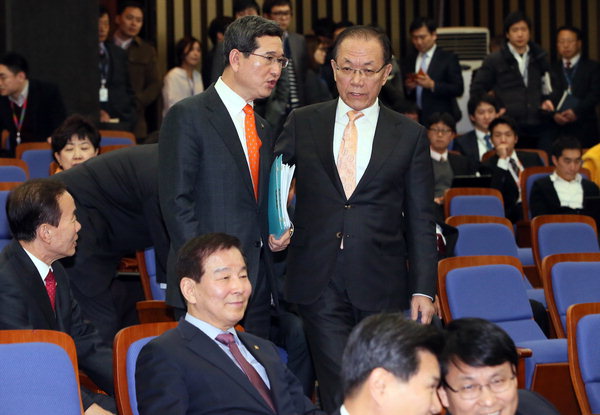 | Ȳ¿ì¿©(¿À¸¥ÂÊ) »õ´©¸®´ç ´ëÇ¥°¡ 22ÀÏ ±¹È¸¿¡¼ ¿¸° ÀÇ¿øÃÑȸ¿¡¼ ±èÇÐ¿ë ´ç Á¤Ä¡°³ÇõƯÀ§ °£»ç¿Í ¾ê±âÇϰí ÀÖ´Ù. ¿¬ÇÕ´º½º |