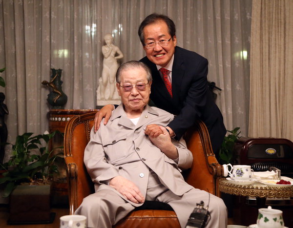 | ÀÚÀ¯Çѱ¹´ç È«ÁØÇ¥ ´ë¼±È帰¡ 5ÀÏ ¿ÀÈÄ ¼¿ï Áß±¸ ½Å´çµ¿ ±èÁ¾ÇÊ Àü ±¹¹«ÃѸ®ÀÇ ÀÚÅÃÀ» ¹æ¹®ÇØ ±è Àü ÃѸ®¿Í ¼ÕÀ» Àâ°í ÀÖ´Ù. ¿¬ÇÕ´º½º |