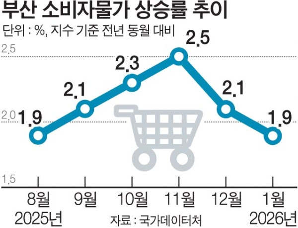 ±¹°¡µ¥ÀÌÅÍó¿Í µ¿³²Áö¹æµ¥ÀÌÅÍûÀÌ 3ÀÏ °¢°¢ ¹ßÇ¥ÇÑ ¡®2026³â 1¿ù ¼ÒºñÀÚ¹°°¡ µ¿Ç⡯À» º¸¸é Áö³´Þ ºÎ»êÀÇ Àüü ¼ÒºñÀÚ¹°°¡ Áö¼ö´Â 117.94(2020³â=100)·Î Áö³ÇØ 1¿ùº¸´Ù 1.9% ¿Ã¶ú´Ù.