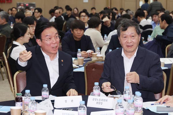±è¿µÈÆ °í¿ë³ëµ¿ºÎ Àå°ü(¿ÞÂÊ)°ú ¹Ú¼ö±Ù Á߾ӳ뵿À§¿øÀåÀÌ '³ë¶õºÀÅõ¹ý'(³ëµ¿Á¶ÇÕ ¹× ³ëµ¿°ü°èÁ¶Á¤¹ý 2¡¤3Á¶ °³Á¤ ¹ý·ü) ½ÃÇàÀ» ¾ÕµÎ°í Áö³ 4ÀÏ ¼¼Á¾ÄÁº¥¼Ç¼¾ÅÍ¿¡¼ ¿¸° '°í¿ë³ëµ¿ºÎ¡¤Á߾ӳ뵿À§ °øµ¿ ¿öÅ©¼ó'¿¡¼ ´ëÈÇϰí ÀÖ´Ù. ¿¬ÇÕ´º½º