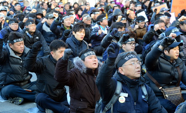 ±Ý¼Ó³ëÁ¶ ºÎ»ê¾ç»êÁöºÎ Á¶ÇÕ¿ø 300¿© ¸í(°æÂûÃß»ê)Àº À̳¯ ºÎ»ê µ¿±¸ ºÎ»ê¿ª ±¤Àå¿¡¼ ÅõÀï °áÀǹ®À» ³¶µ¶Çϰí 30¿© ºÐ°£ÀÇ Áýȸ¸¦ ¿¬ µÚ ÃÖ ¾¾ÀÇ ½Ã½ÅÀÌ ¾ÈÄ¡µÅ ÀÖ´Â ¿µµµ±¸ ÇÑÁøÁß°ø¾÷ Á¶¼±¼Ò±îÁö ±æ°Å¸® ÇàÁøÀ» ¹ú¿´´Ù. Áýȸ´Â Å« ¸¶Âû ¾øÀÌ ³¡³µ´Ù.