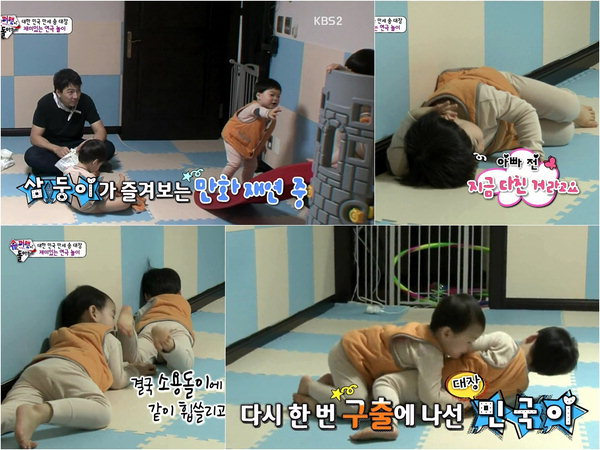 ¸¸¼¼´Â Æò¼Ò ÀÚÁÖ º¸´Â ¾Ö´Ï¸ÞÀ̼ÇÀ» Èä³» ³»¸ç Àå³°¨ ¹Ì²ô·³Æ²À» °Å²Ù·Î ±â¾î ¿Ã¶ó°¡·Á°í ¹ß¹öµÕÀ» ÃÆ°í, ÀÌ¿¡ ¹Î±¹Àº ¾à¼ÓÀ̳ª ÇÑ µí ¸¸¼¼¸¦ ÇâÇØ ¼ÕÀ» »¸À¸¸ç "¾ÈµÅ! ÆäÀ̼Ò! Àâ¾Æ"¶ó°í ¿ÜÃÄ ´«±æÀ» »ç·ÎÀâ¾Ò´Ù.